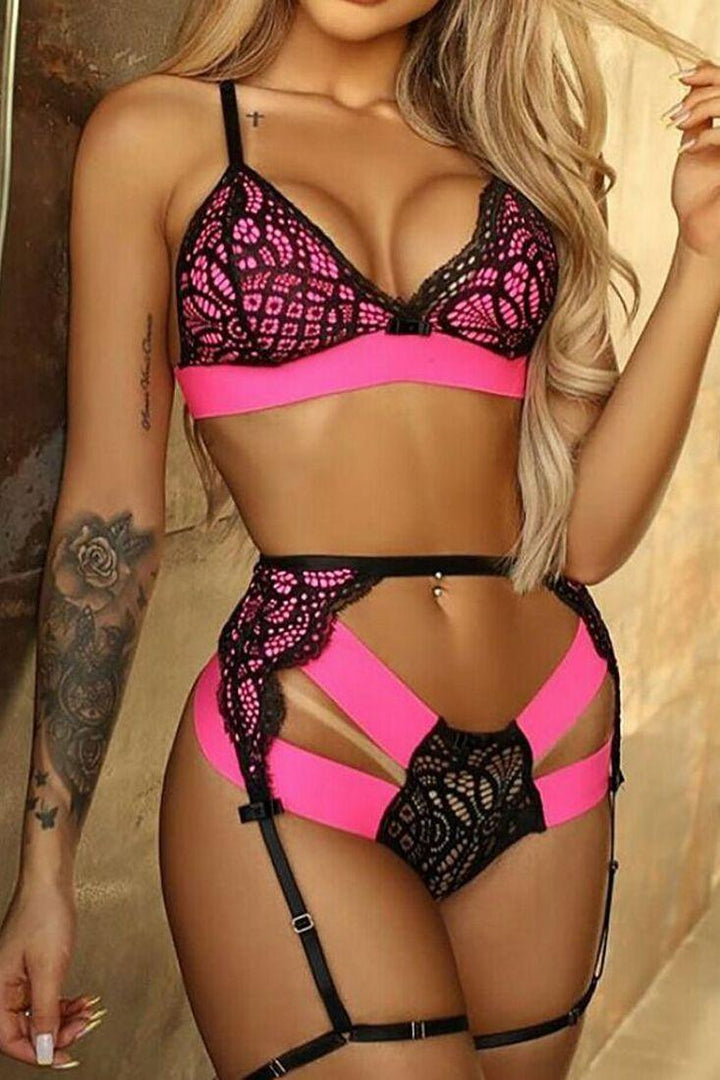 Fuchsia Lace Strappy Two Tone Sexy Two Piece Lingerie
