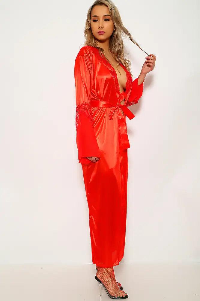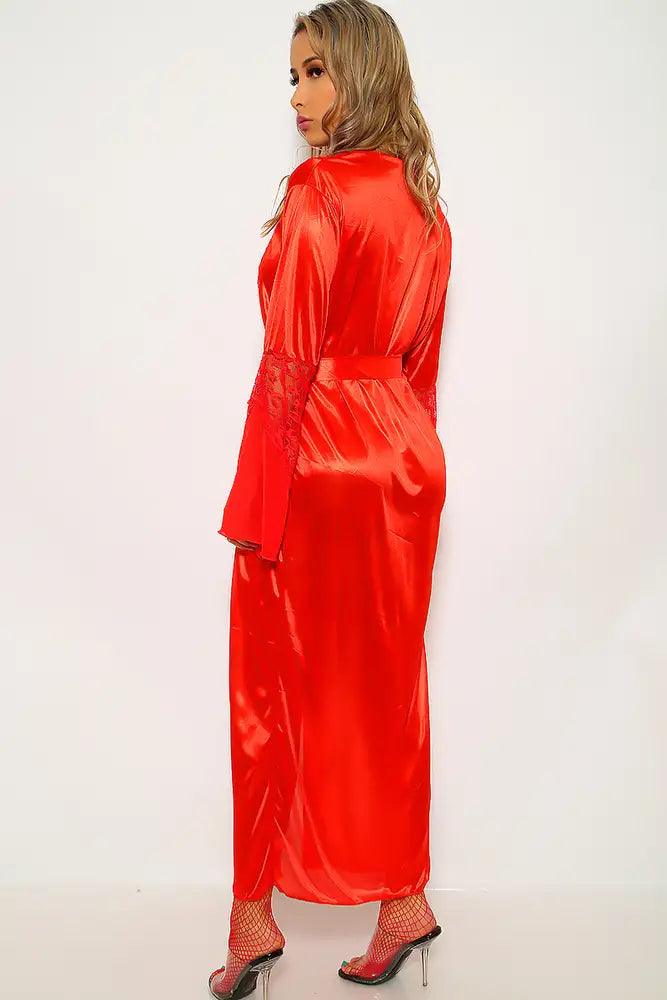 Red Satin Lace Embroidered Two Piece Lingerie Set