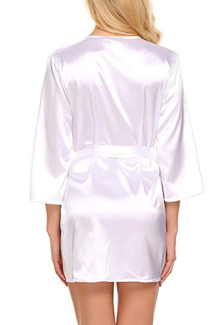 Be Bedroom ready in this sexy lingerie. Featuring; long sleeve, lace trim, satin, open front, wrap around belted rober. Followed by a sexy wear.
