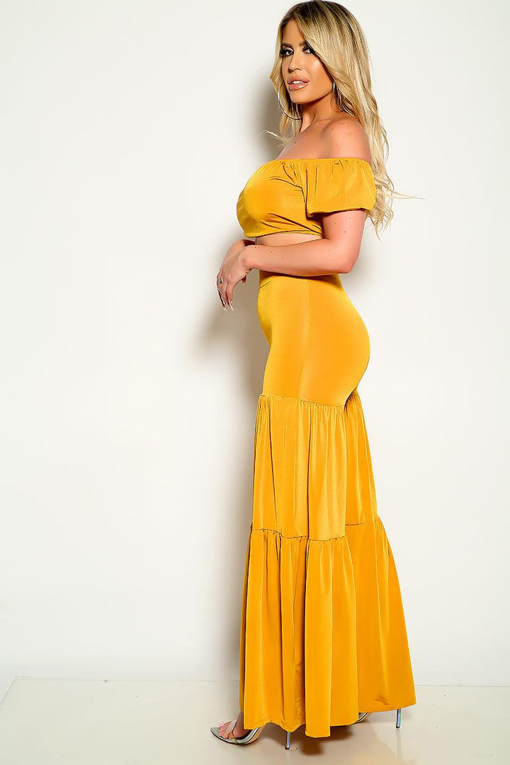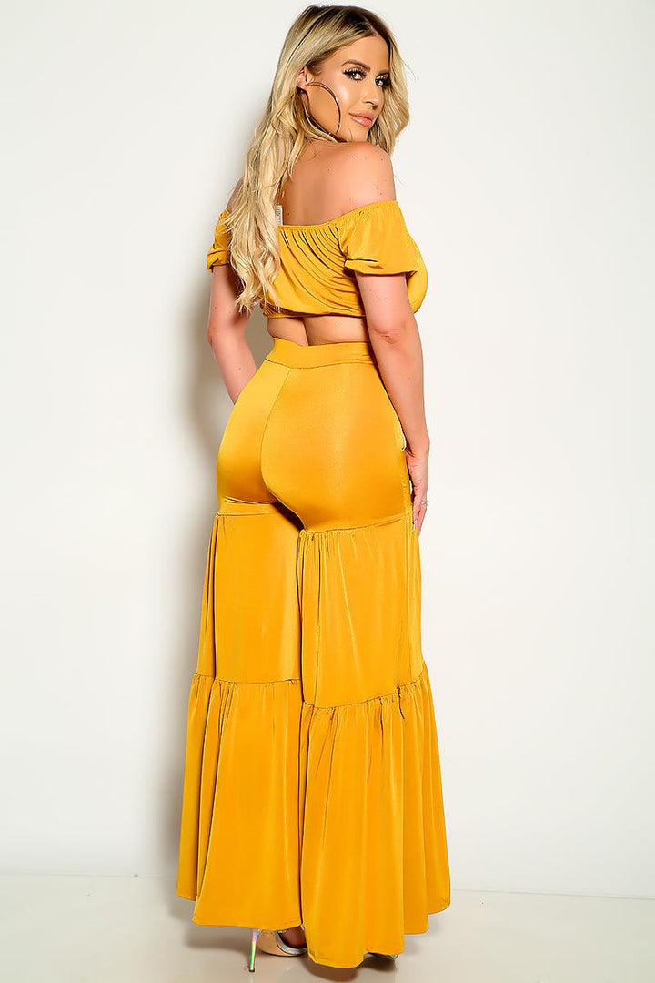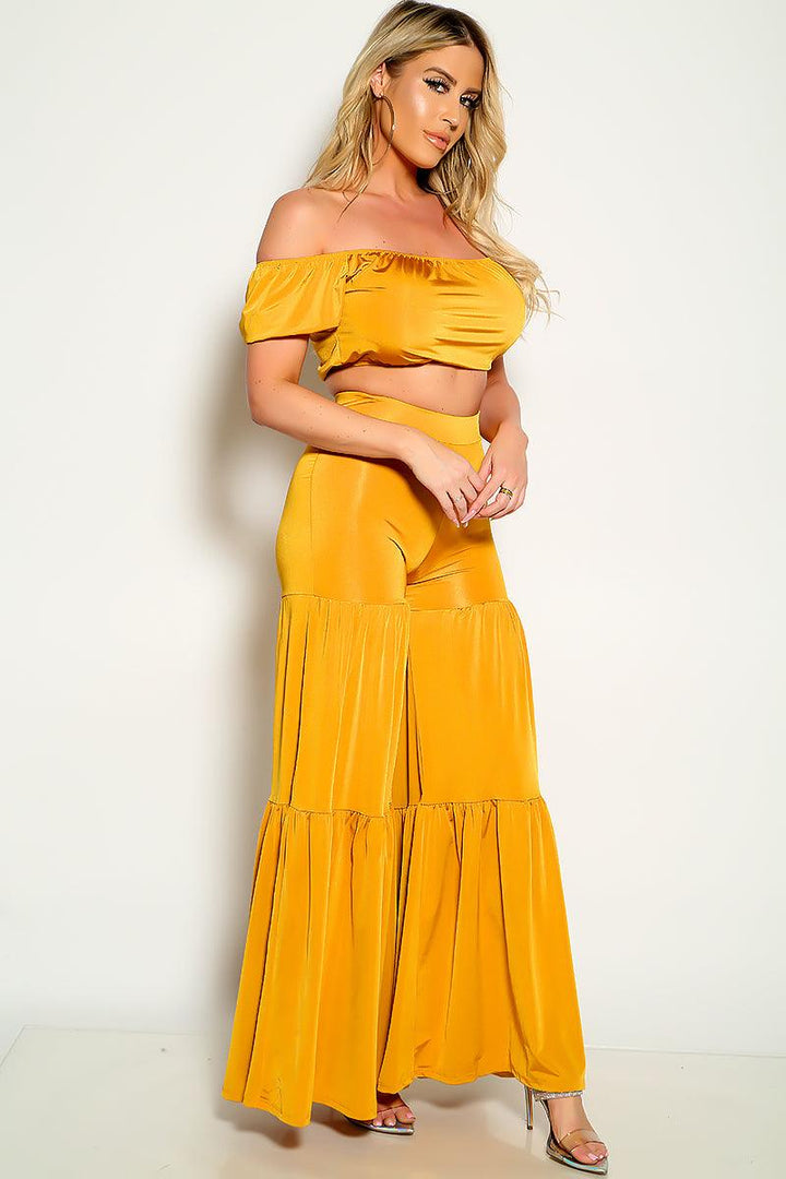 Match your favorite sneaker with this outfit for a trendy look. Featuring; short sleeve, cropped top, flared, off the shoulder, high waist bottoms. Followed by a fitted wear.