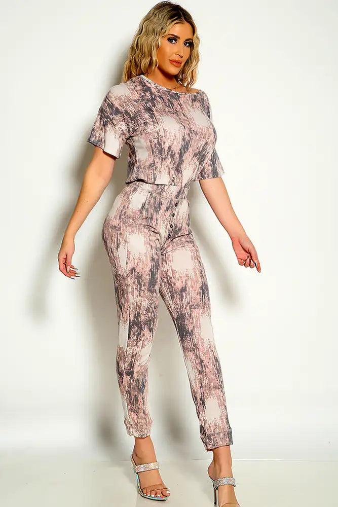 Light Mocha Short Sleeve Two Piece Loungewear Outfit