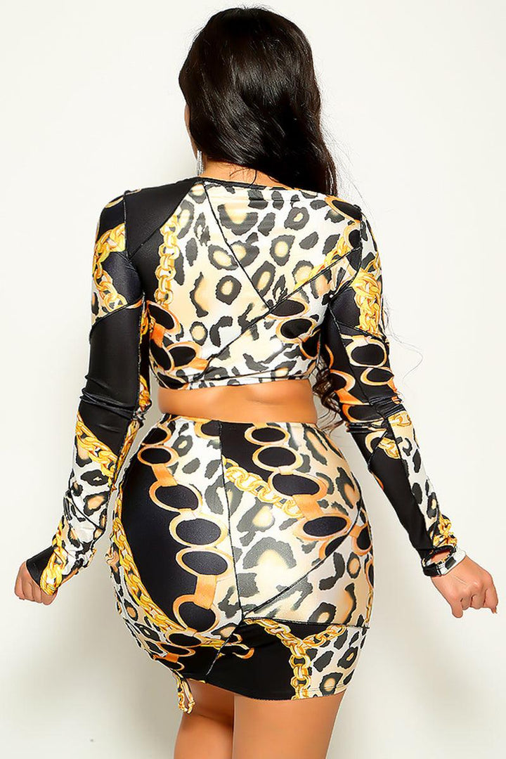 Gold Leopard Design Crop Top & Skirt 2 Pc Set