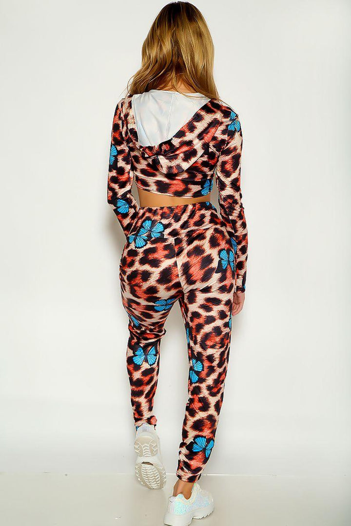 Leopard Butterfly Print Long Sleeve Hooded Two piece Outfit