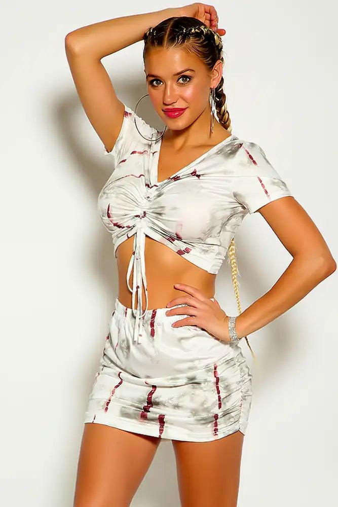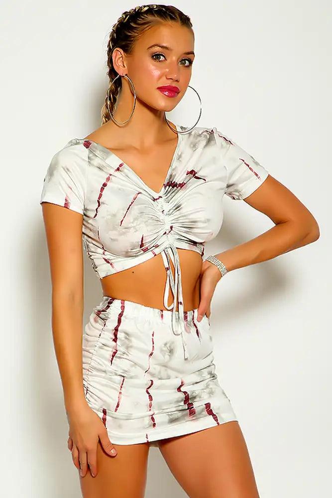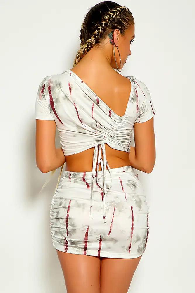 Cream Black Short Sleeve Ruched Two Piece Dress