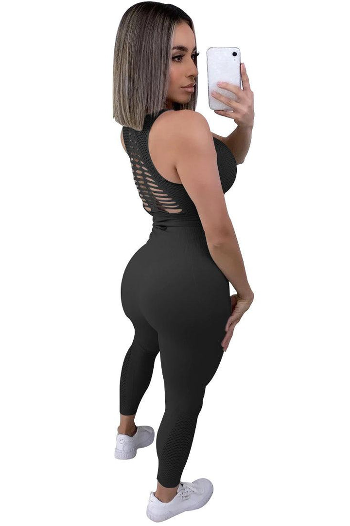 Sexy Black 2pc Yoga Outfit Tang Top And Pants