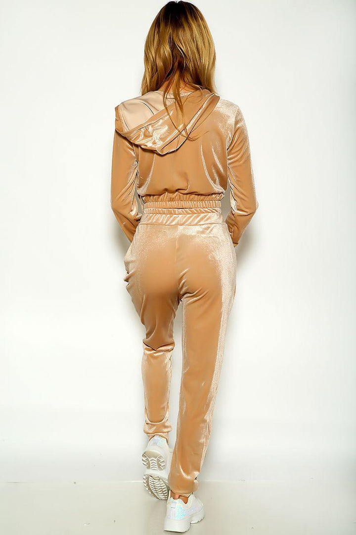 Cream Long Sleeve Velvet Hooded Lounge Wear Outfit