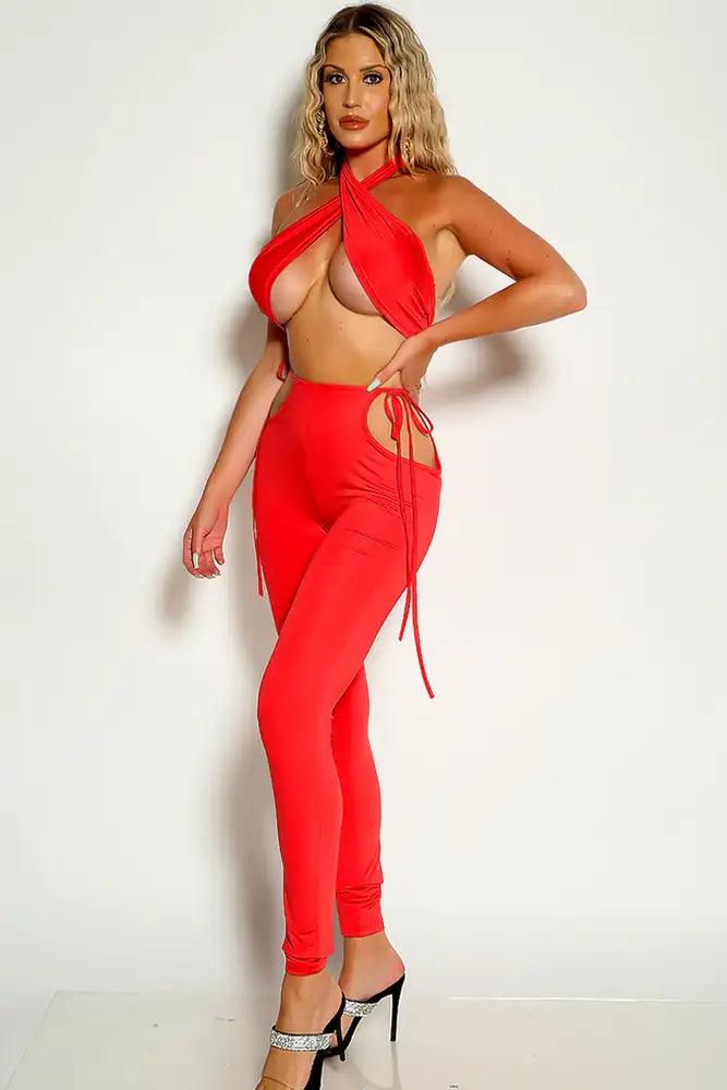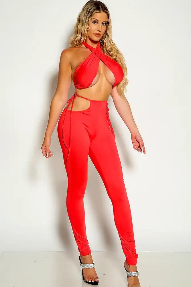 This Two Piece outfit is perfect for any occasion. Featuring; halter, cross strap, side tie. Followed by a fitted wear