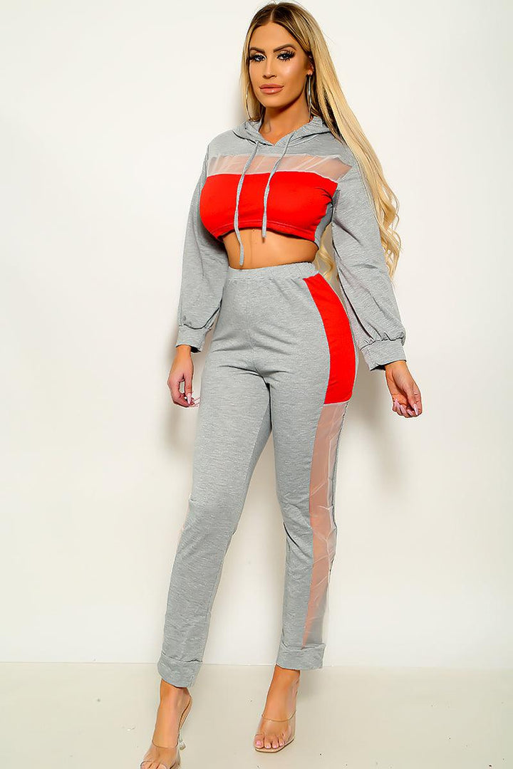Grey Crop Drawstring Hoodie & Jogger Pants 2 Pc Set