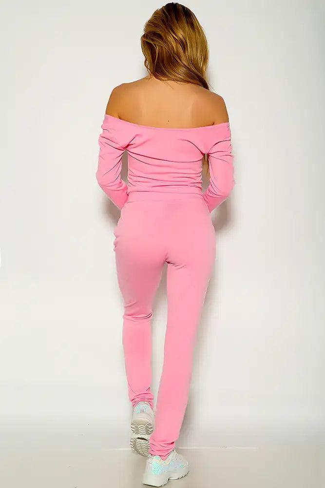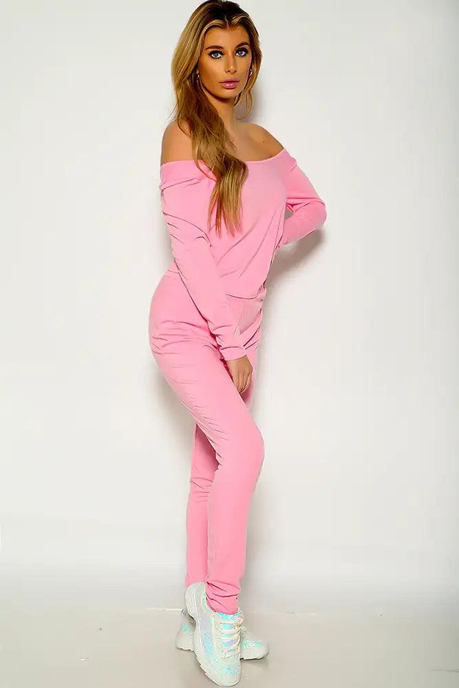 Pink Long Sleeve Off The Shoulder Lounge Wear Outfit