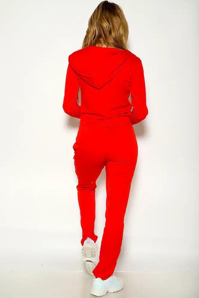 Red Long Sleeve Front Zipper Two Piece Lounge Wear Outfit