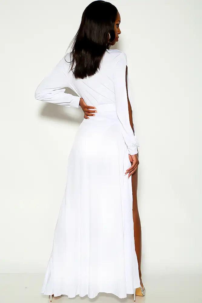 White Long Sleeve Cut Out Belted Three Piece Outfit