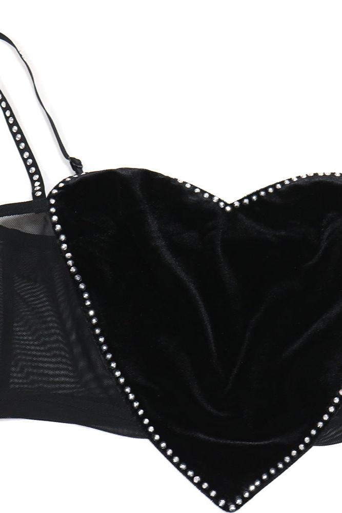 Black Velvet Rhinestone Heart Mesh Fur Trim Gloves 3Pc Party Dress Outfit