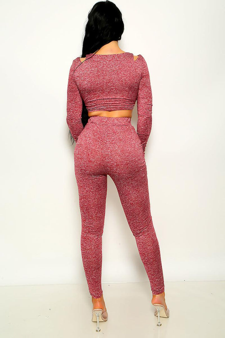 Wine Cold Shoulder Cropped Active 2 Pc Set
