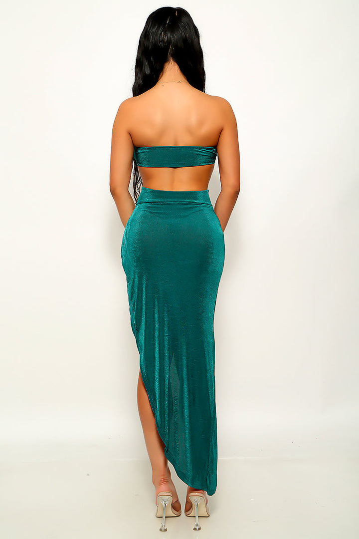Emerald Green Sleeveless Metal Detail Two Piece Dress