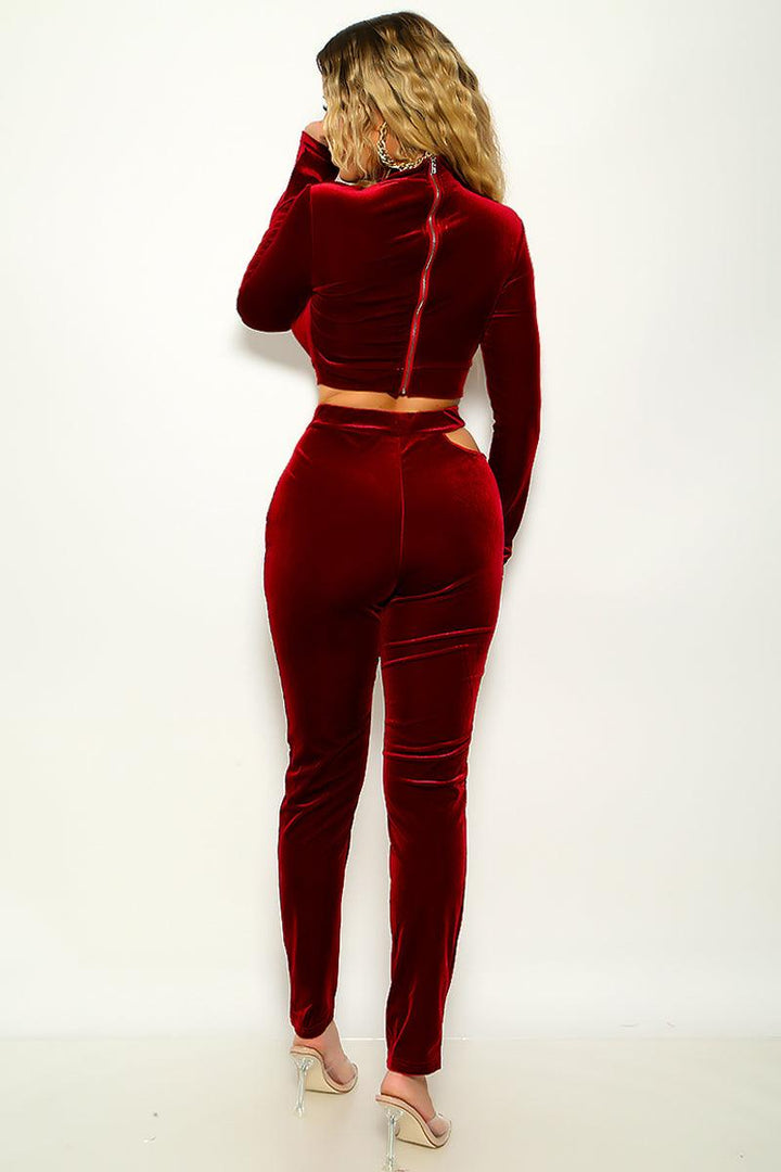 Sexy Wine Two Piece Long Sleeve Pants Outfit