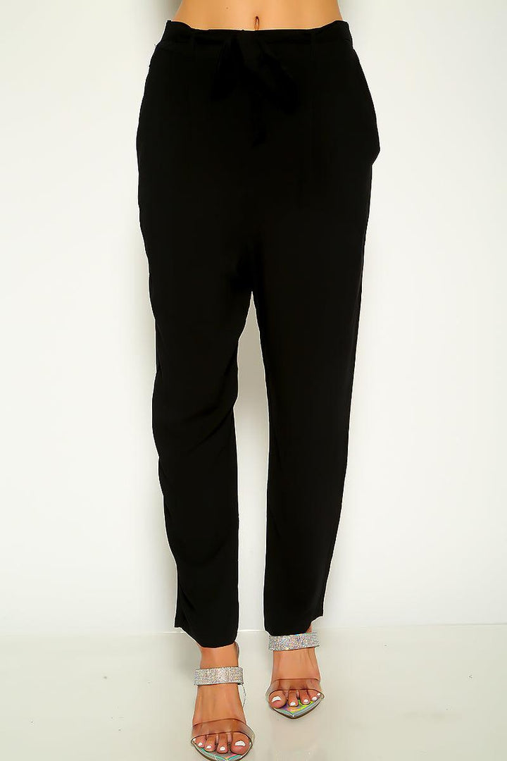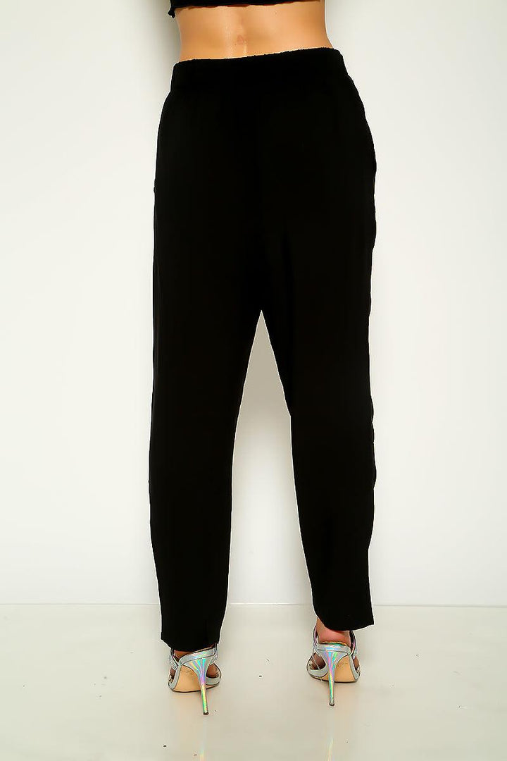 Black Belted Elastic Waist Casual Pants
