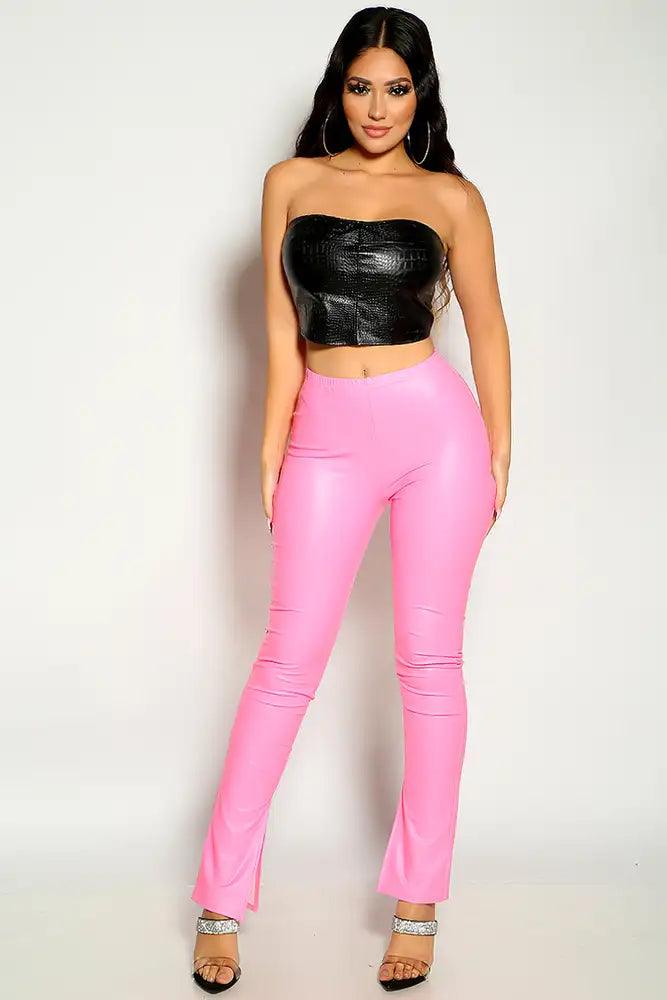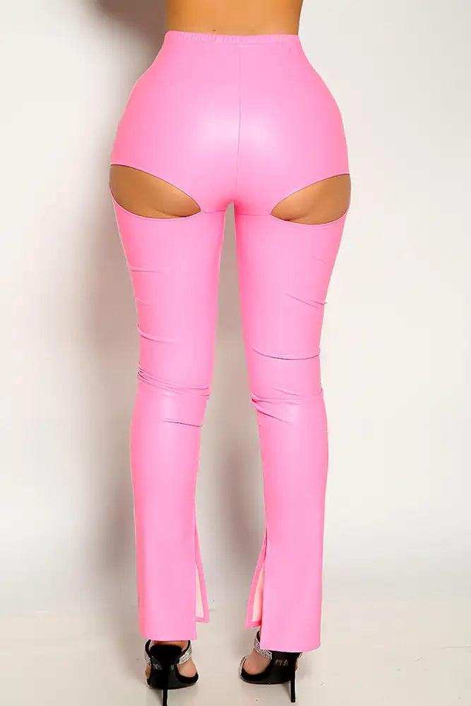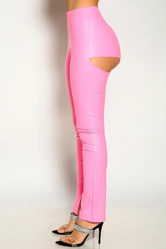 Fuchsia Cut Out Faux Leather Cut Out Pants