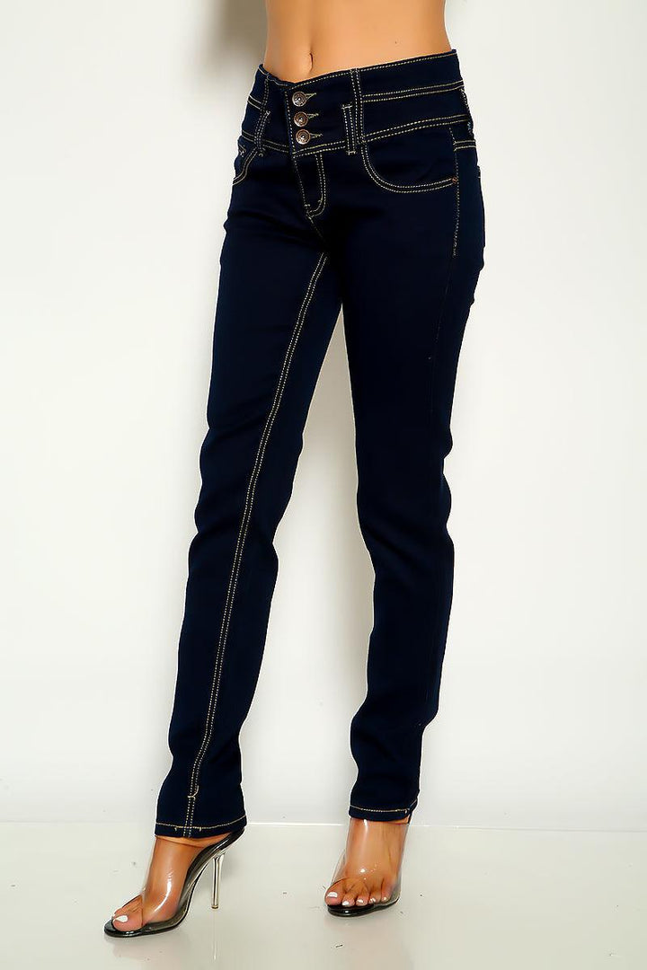 Dark Blue Denim Triple Button Mid Rise Skinny Jeans