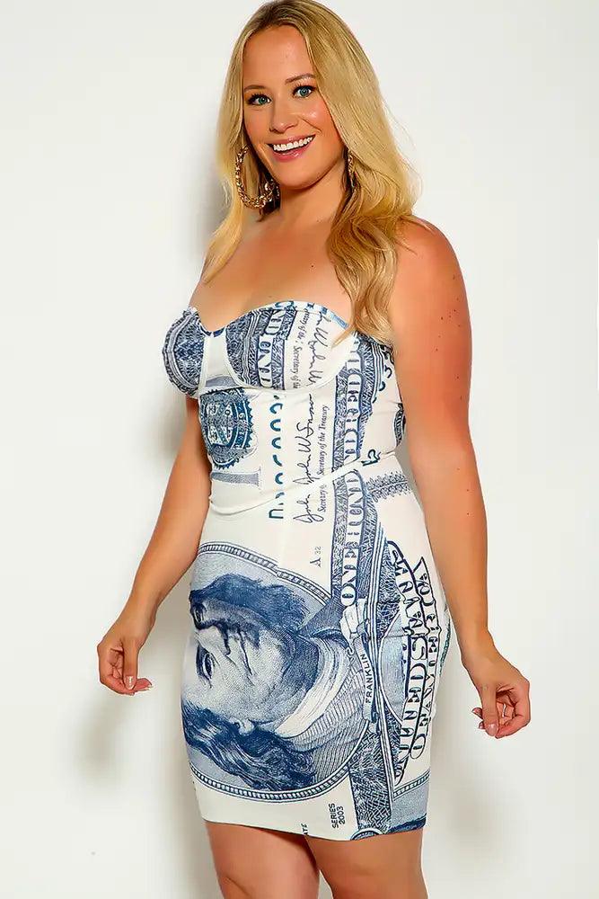 Show off your curves with this sexy dress! Featuring, strapless, U.S dollar print, two tone, back zipper closure.Followed by a fitted wear