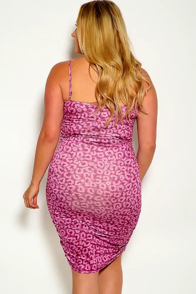 Fuchsia Leopard Print Sleeveless Plus Size Party Dress