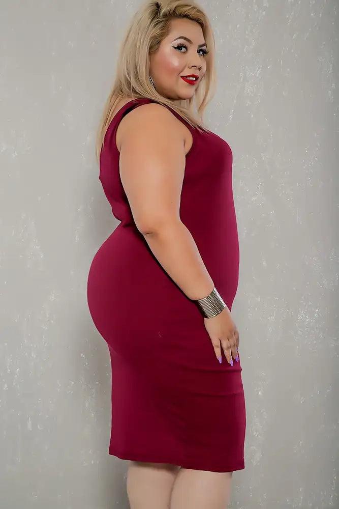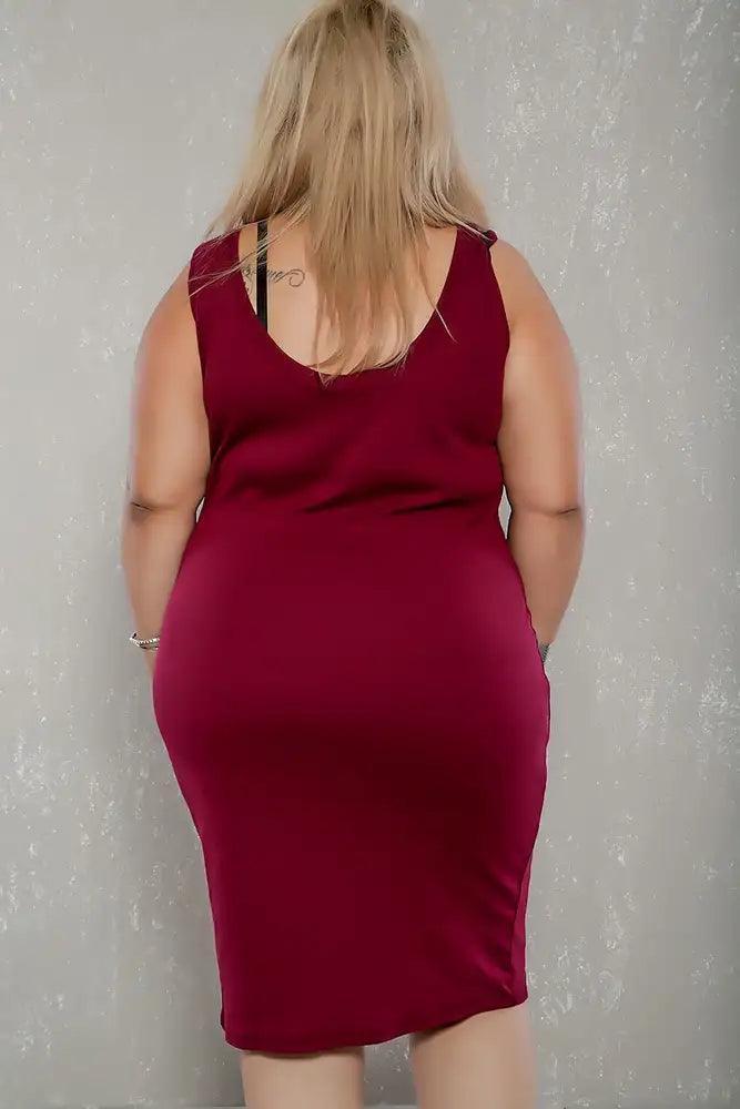Sexy Wine Ribbed Knee Length Sleeveless Casual Dress