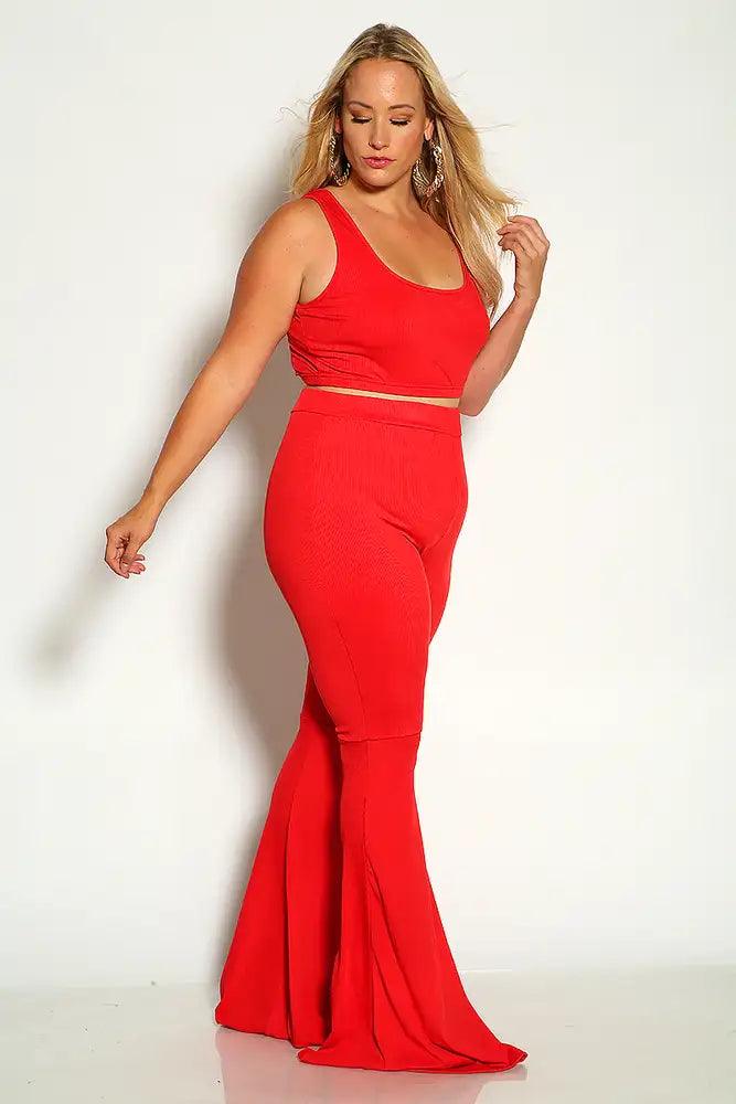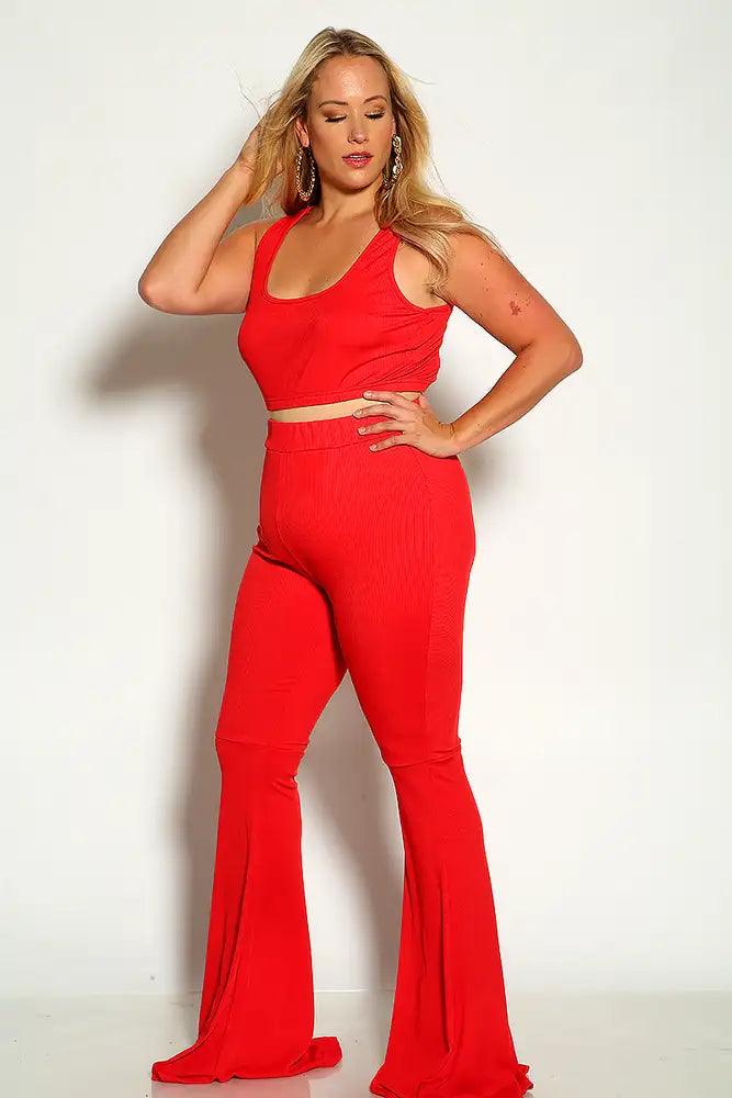 Rec Sleeveless Ribbed Cropped Flared Plus Size Two Piece Outfit