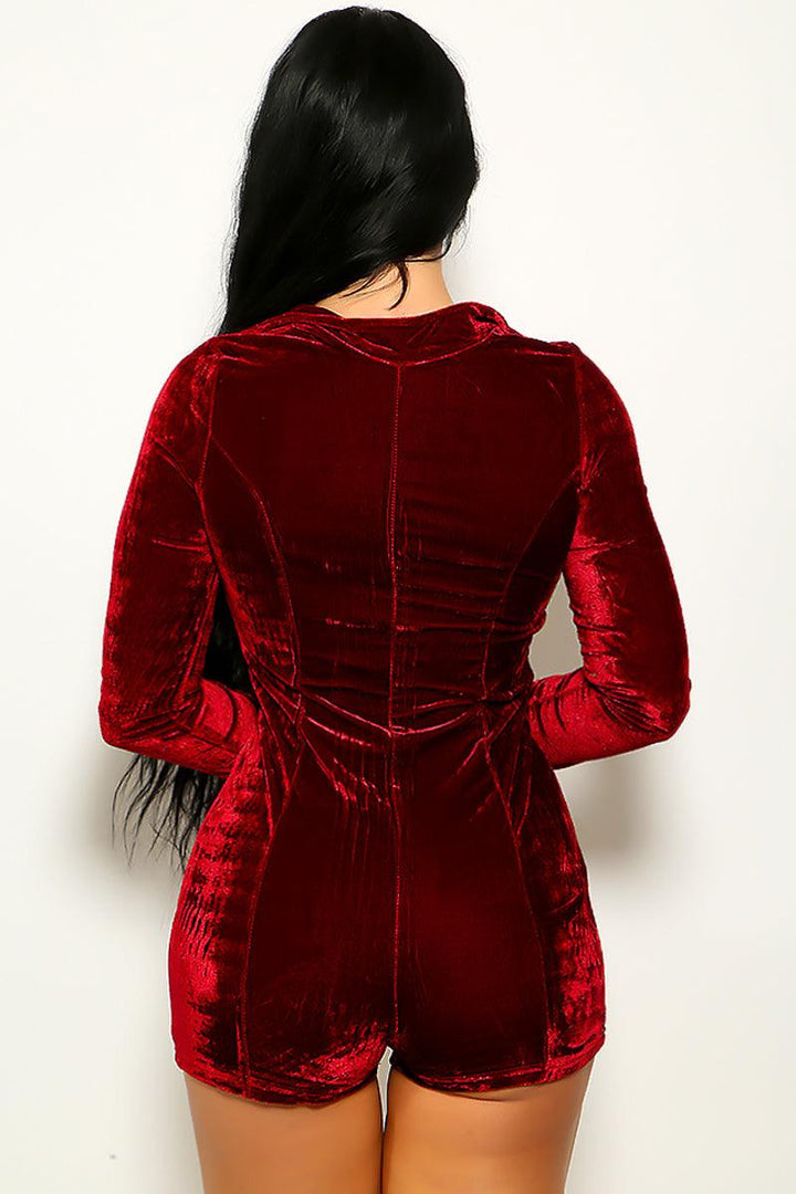 Deliver comfy yet chic in this sexy romper! Featuring; long sleeves, mock neckline, front zipper closure, velvet fabric, followed by a fitted wear. Stretch Fit.
