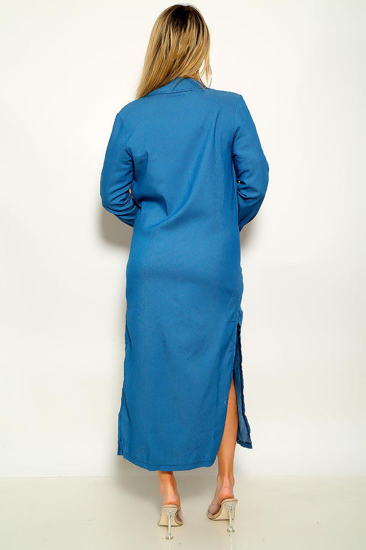 Slay in style in this sexy cardigan! Featuring; long sleeves, pointy collar, double slits, blue denim color, followed by a stylish wear. Stretch Fit. *Dress is NOT included.