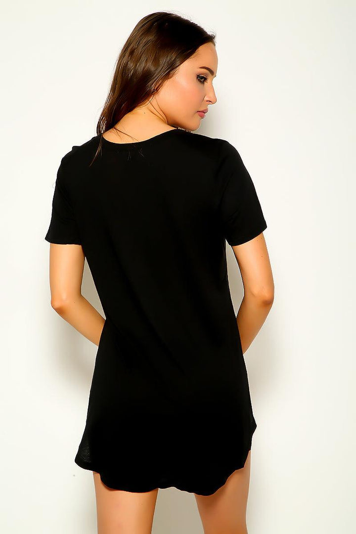 Black Side Slit Round Neck Short Sleeve Loose Fit Top