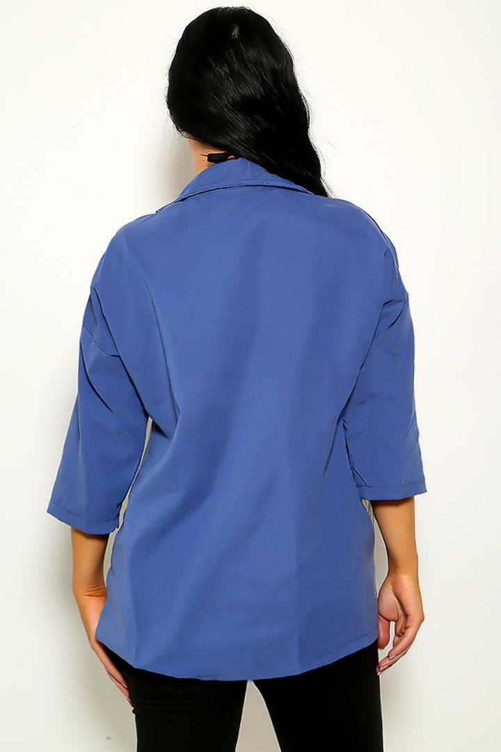 Blue Linen Half Sleeve Open Top