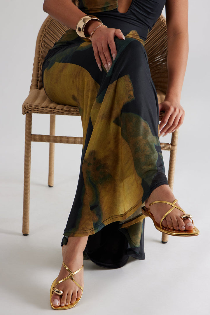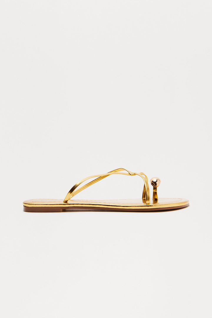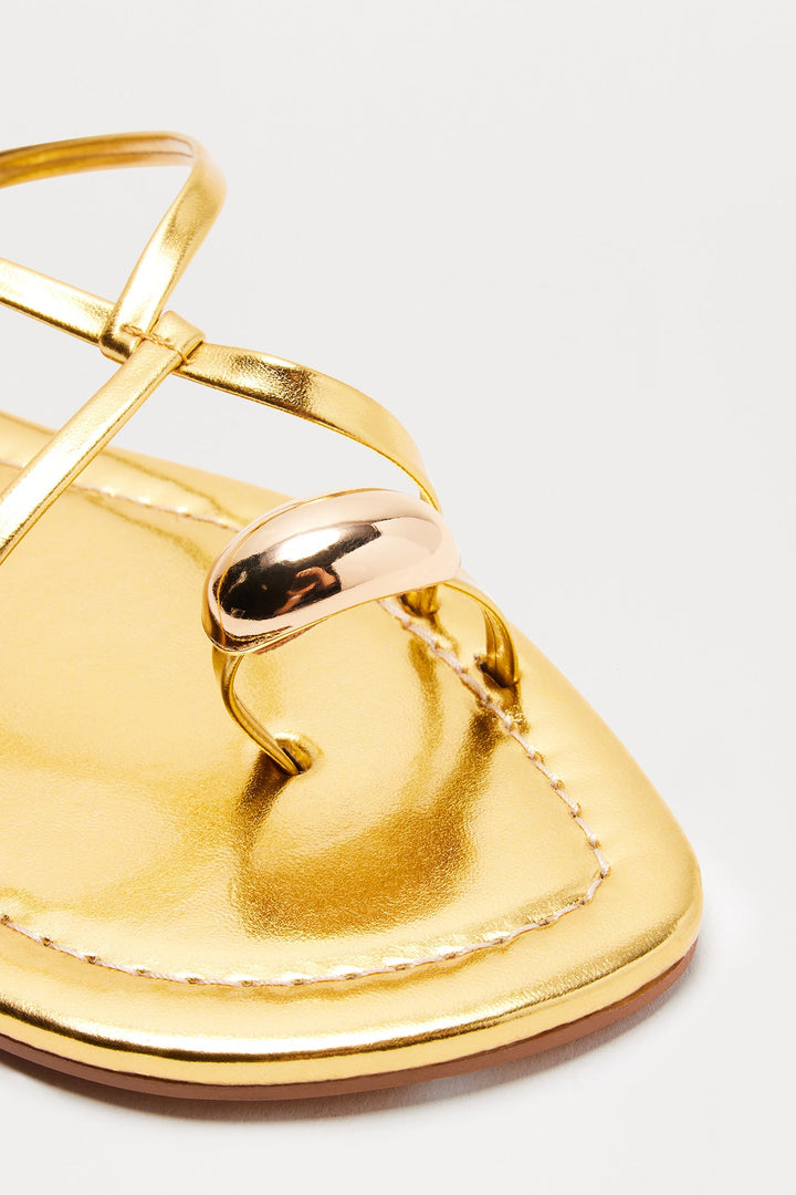 Available In Black, Gold And Silver. | Flat Sandals | Hardware Toe Ring Detail | Square Toe | Flat Heel | Imported