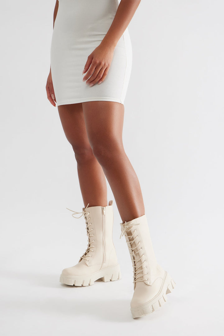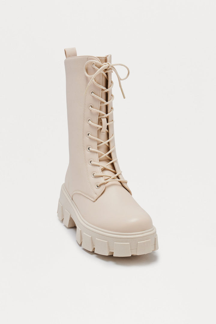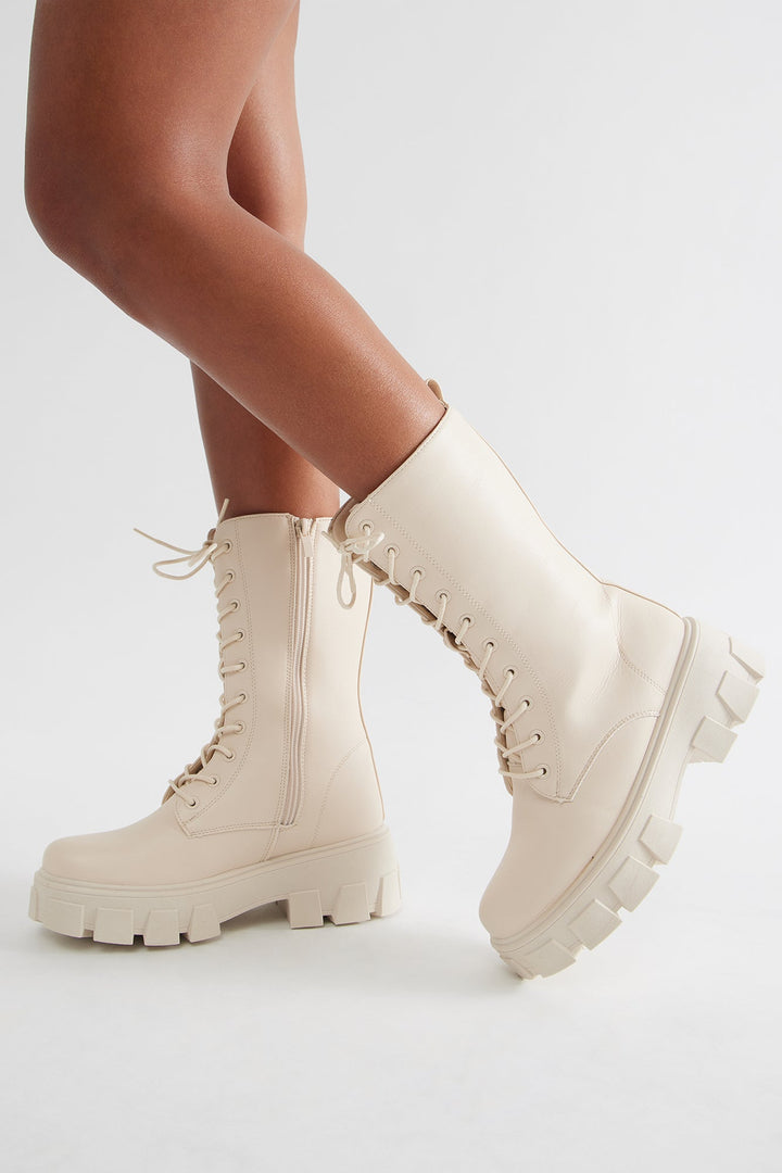 Available In Beige And Black. | Combat Booties | Lace Up Detail | Round Toe | Flat Heel | Imported