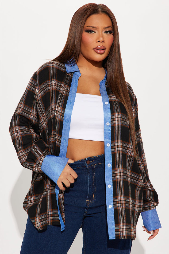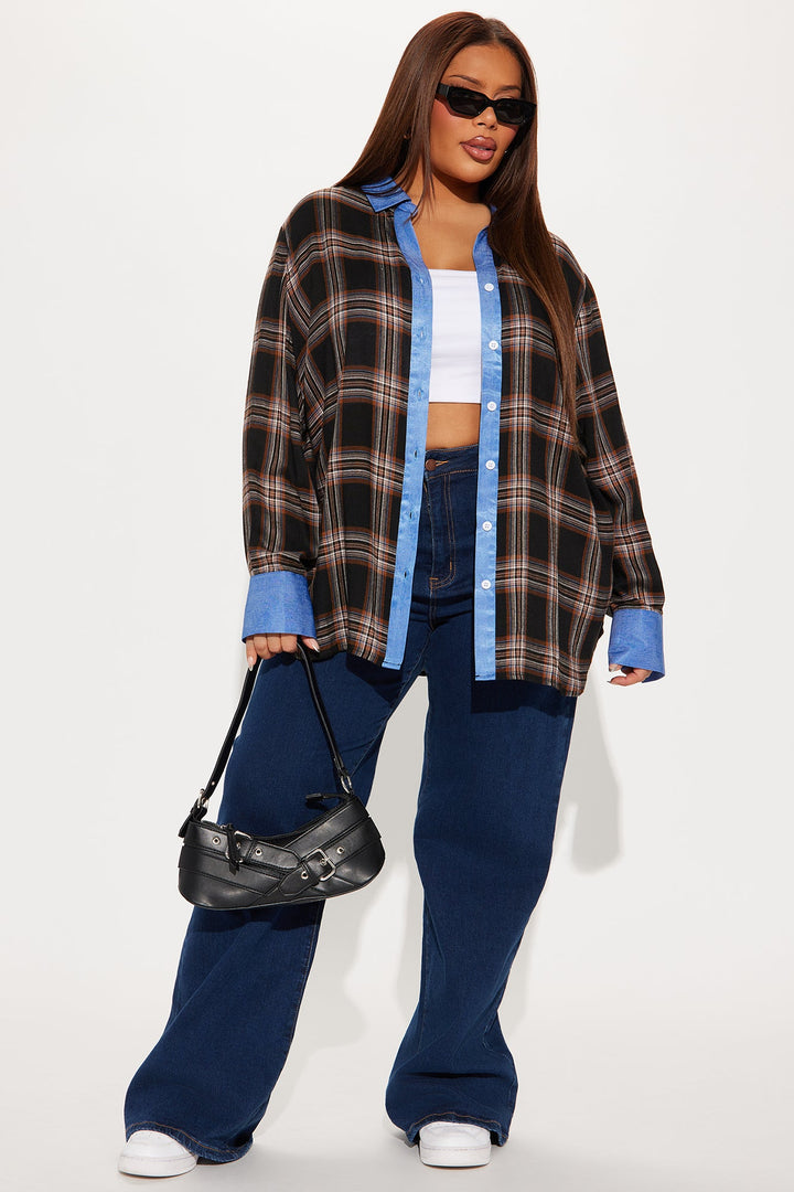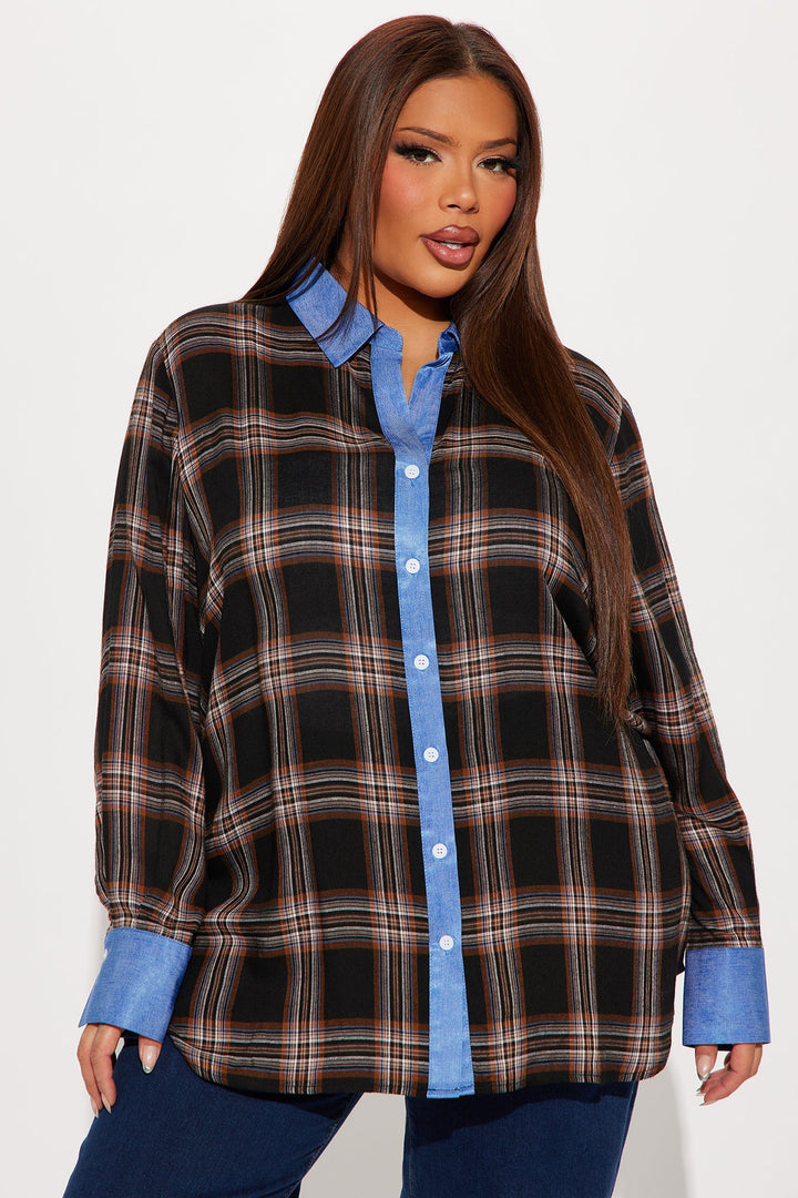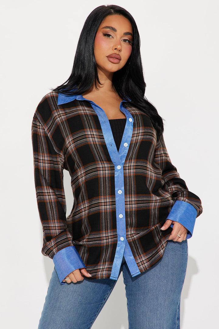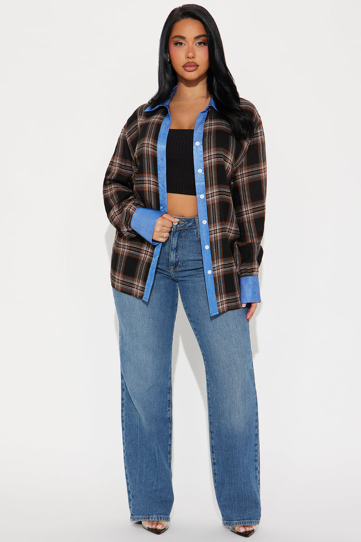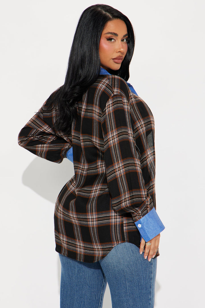 Come Right Back Plaid Shirt - Brown Combo