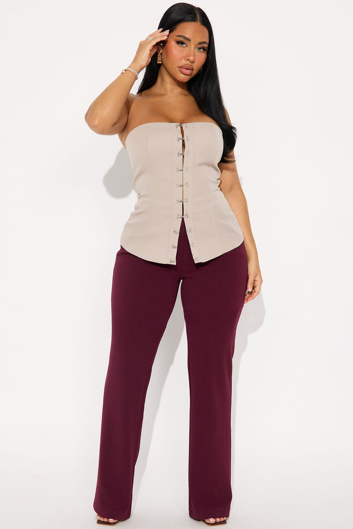 Available In Black And Taupe. | Corset | Hood And Eye Closure | Boning | Shell 97% Polyester 3% Spandex | Lining 100% Polyester | Imported