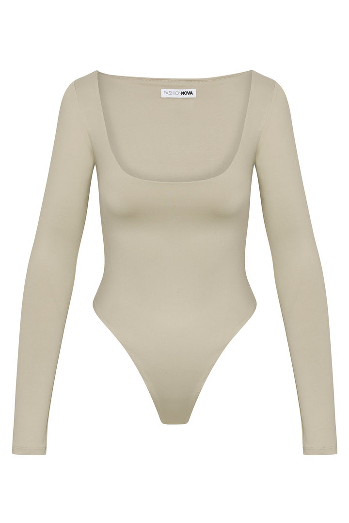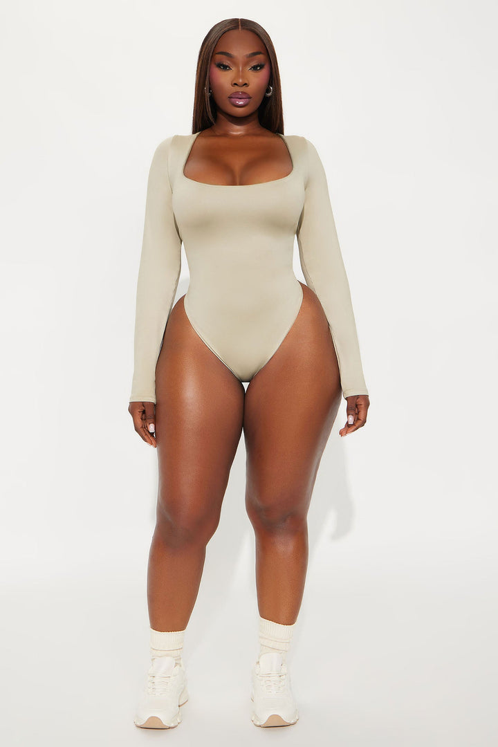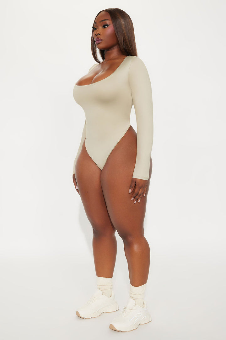 Contour Double Lined Long Sleeve Wide Scoop Neck Bodysuit - Stone