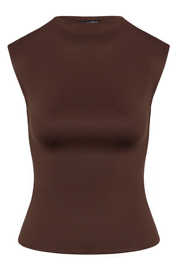 Available In Black, Bone, Chocolate, Military Green, Stone And Wine. | Mock Neck Top | Stretch | Sleeveless | Smoothing And Shaping | Double Lined | Self/Lining: 90%Nylon 10%Spandex | Imported