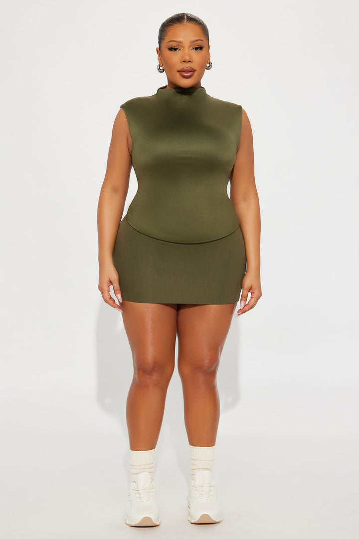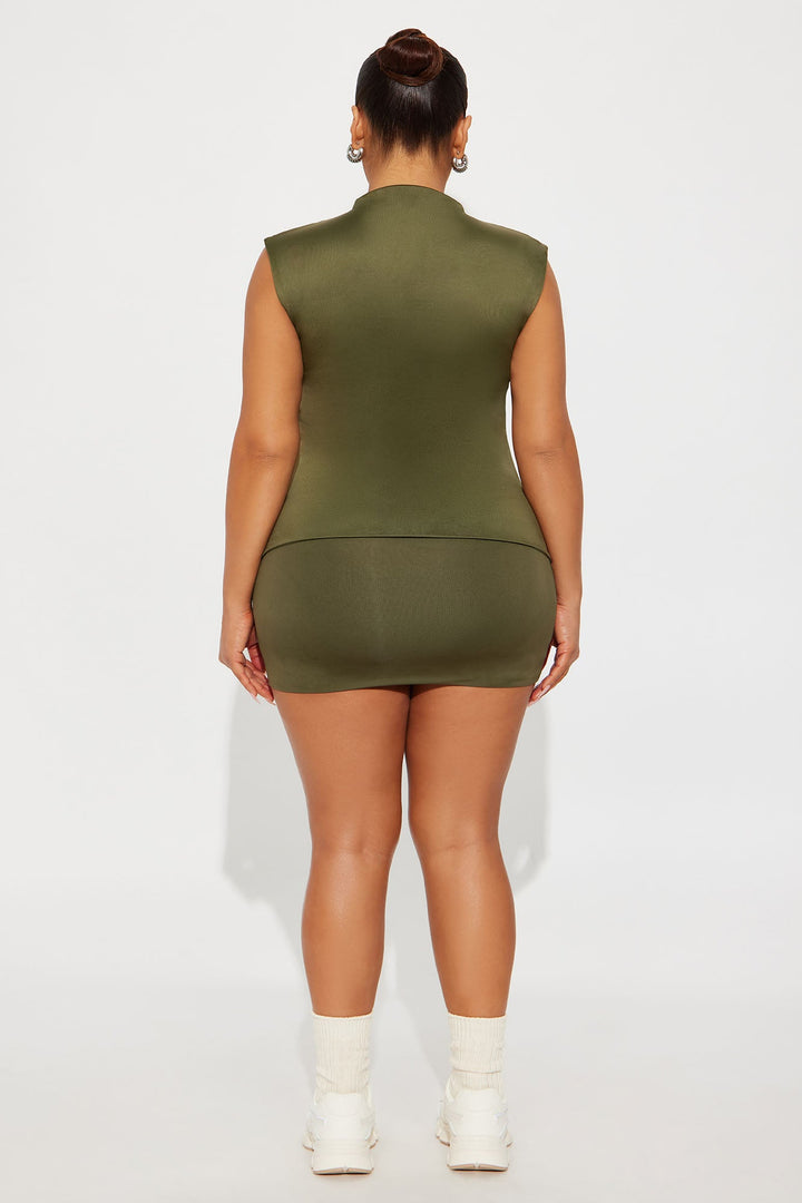 Available In Black, Bone, Chocolate, Military Green, Stone And Wine. | Mock Neck Top | Stretch | Sleeveless | Smoothing And Shaping | Double Lined | Self/Lining: 90%Nylon 10%Spandex | Imported