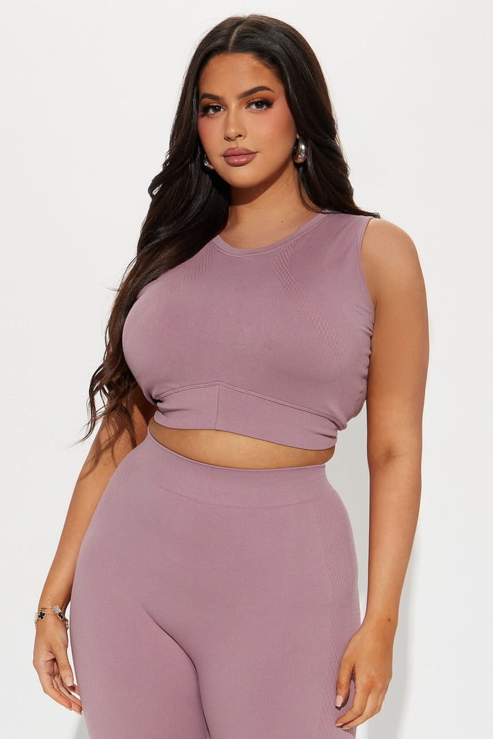 Available In Mauve And Olive. | Active Sports Bra | High Neck | Sleeveless | Textured Fabric | Low Impact | Stretch | Pair with "Cool Breeze Active Legging" | 90% Nylon 10% Spandex | Imported