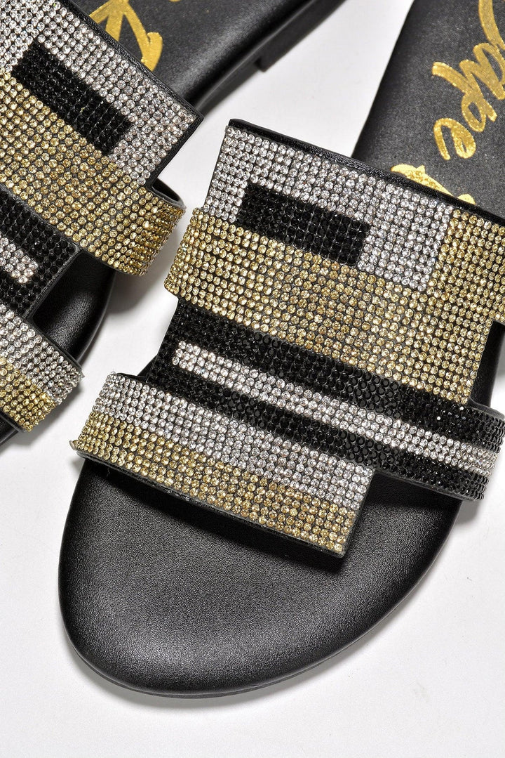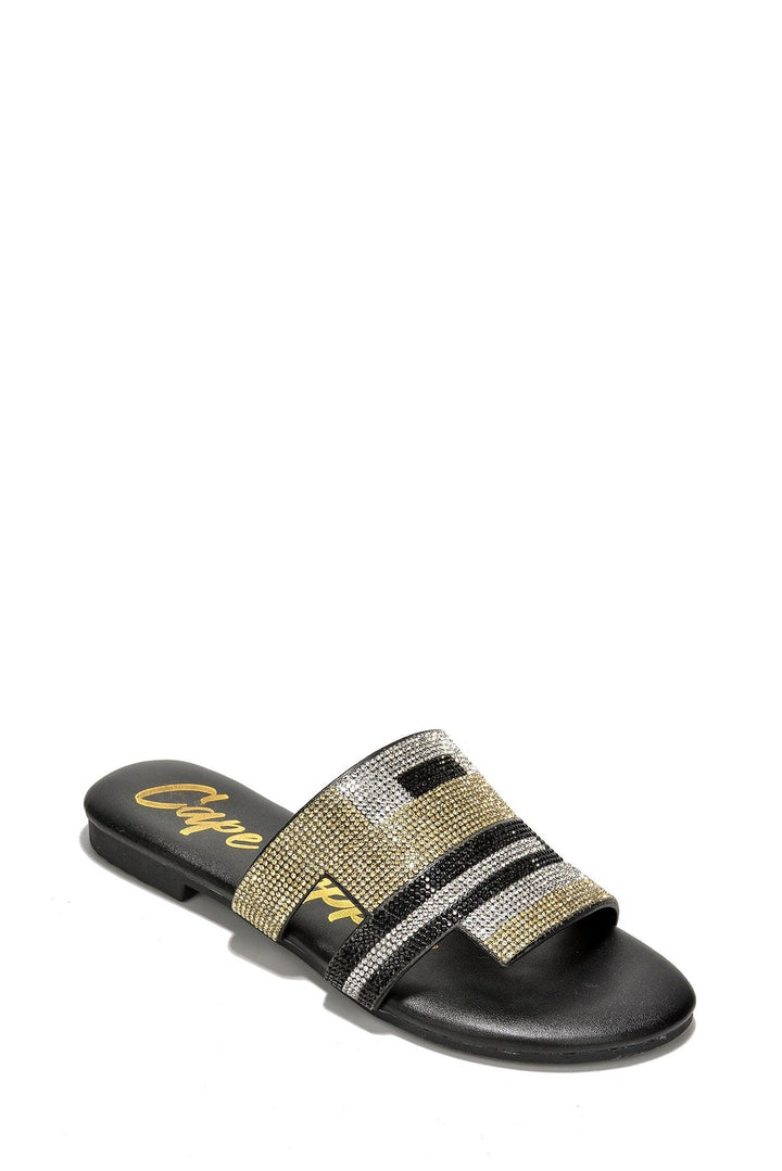 CORDELIA - BLACK - SANDALS by CAPE ROBBIN round toe rhinestone accents metallic PU flats These Cordelia flats will give your look a special touch of sparkle! Featuring rhinestone accents,these shoes will make any outfit shine. Available in black,silver,and rose gold.