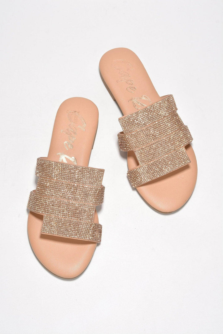 CORDELIA - ROSE GOLD - SANDALS by CAPE ROBBIN round toe rhinestone accents metallic PU flats These Cordelia flats will give your look a special touch of sparkle! Featuring rhinestone accents,these shoes will make any outfit shine. Available in black,silver,and rose gold.