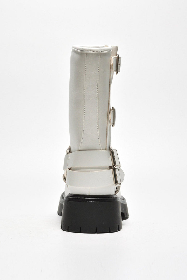 CORDOVA - WHITE - BOOTIES by CAPE ROBBIN closed square toe PU metallic denim block heel buckle detailing rubber outsole true to size lightly cushioned footbed Cordova revs up your style in this ultra-trendy biker-inspired ankle boots. Features strap accents and buckle hardware. It's time to show extra attitude and your alt-chic,edgy side.
