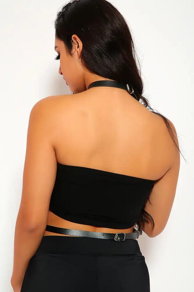 Black O-Ring Detailed Faux Leather Costume Accessory