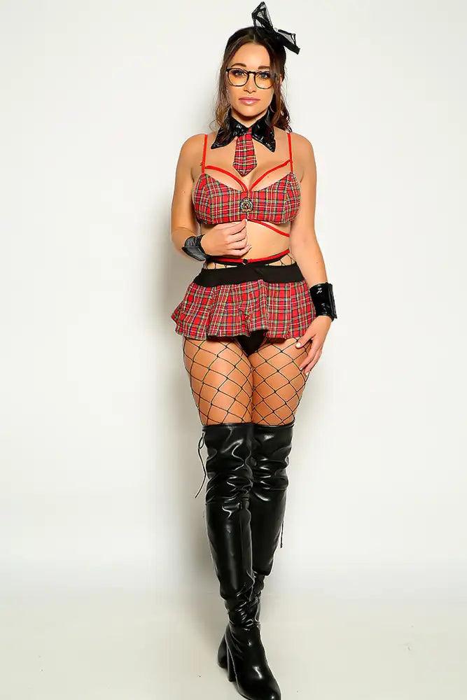 Red Green Plaid School Girl 5 Piece Sexy Costume