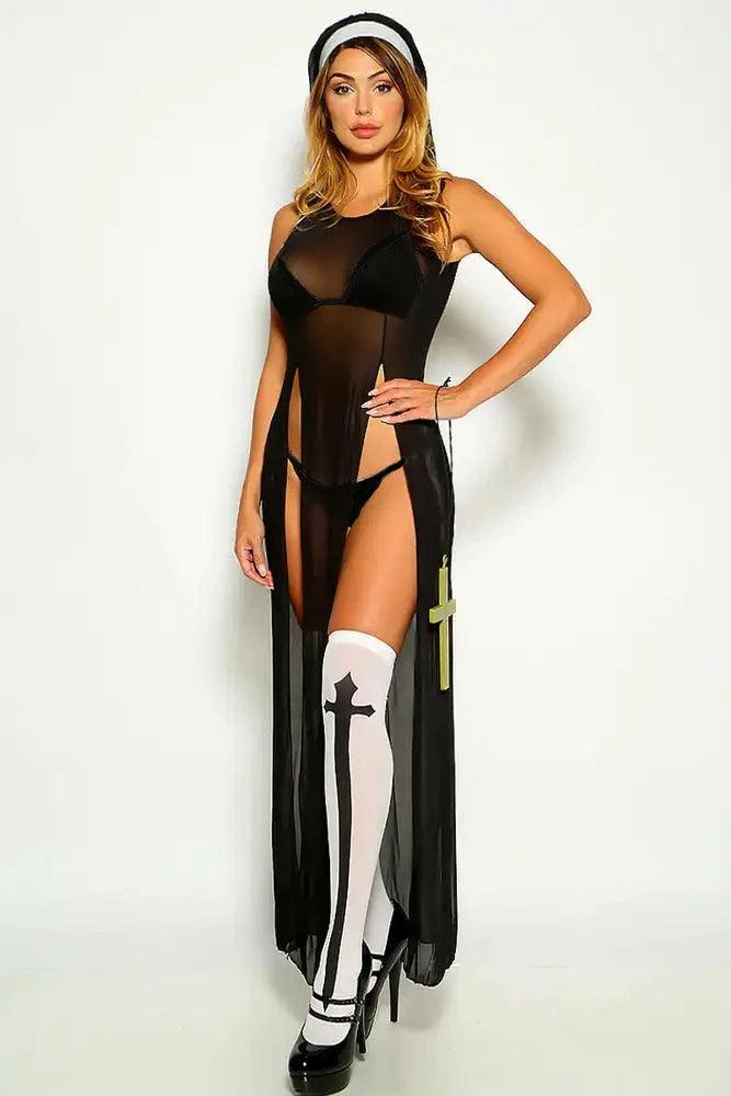 Black Sleeveless Mesh Sexy Nun 5 Piece Costume