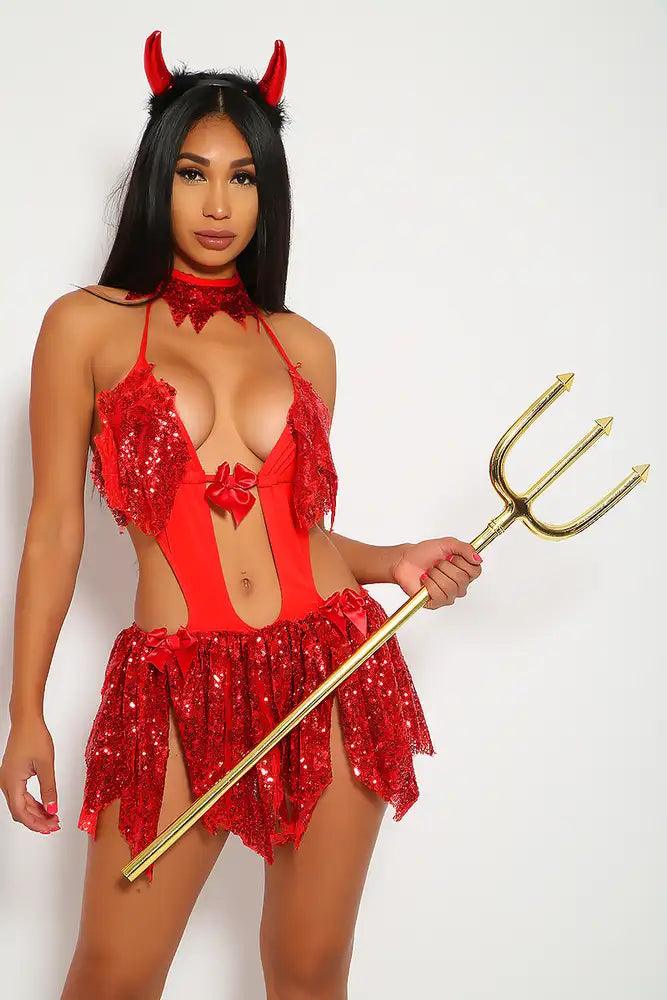 Sinful Red Sequin Devil 2pc Sexy Costume