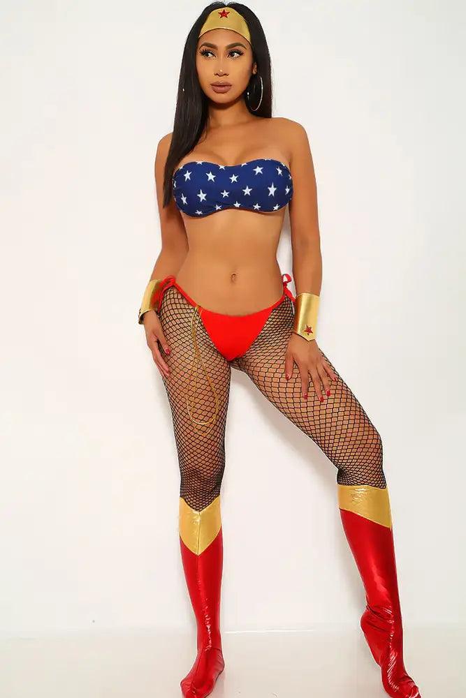 Wine Star Print Wonderful Woman 7 Piece Costume