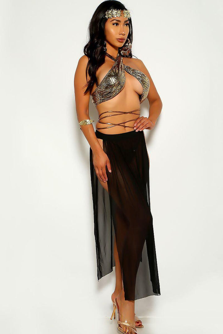 Black Golden Bronze Strappy Snake Cleopatra Goddess 3 Piece Costume