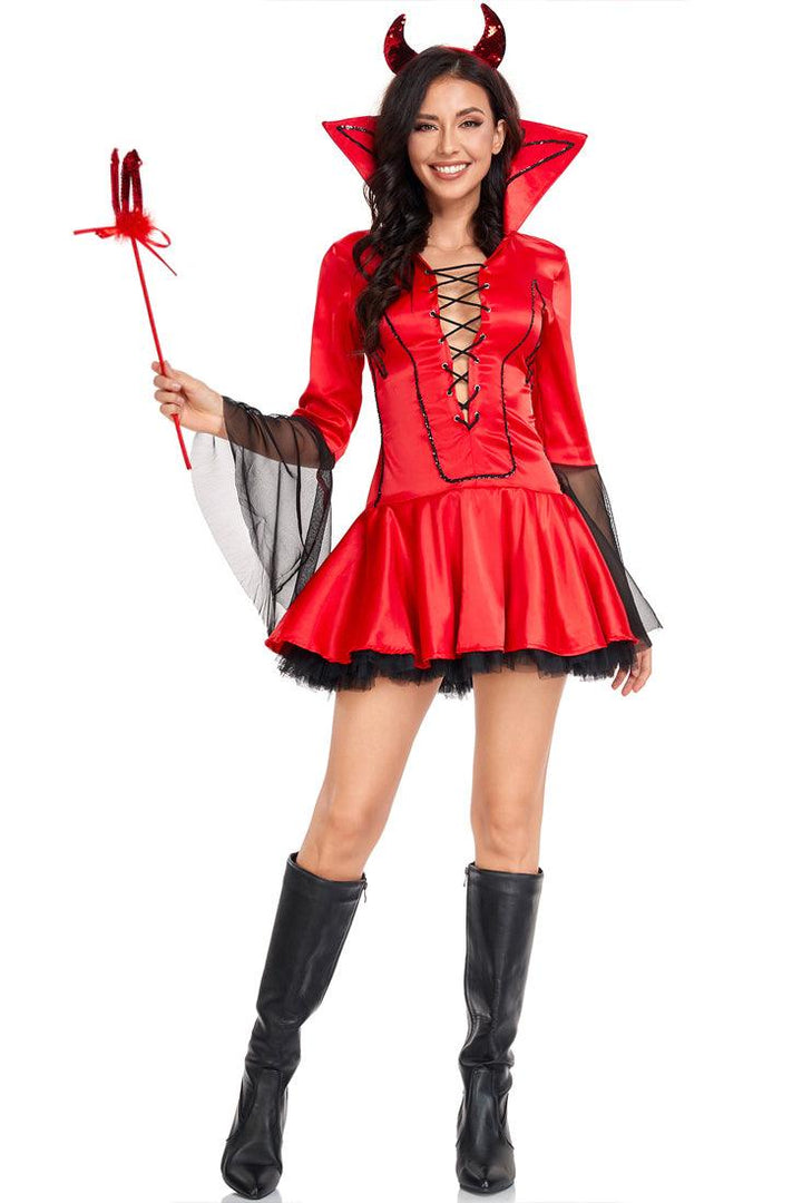 Be devilishly stylish this Halloween with our Red Black Mesh 3 Pc Devil Costume! This striking outfit is perfect for making a statement at any spooky event, and is sure to draw some serious attention. Add some pizzazz to your look and be the hottest devil in town! Features: Devil dress, horn.
