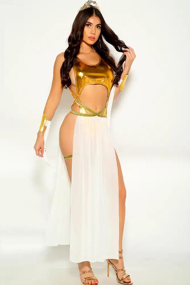 Gold White Cut Out Sexy Goddess 4 Piece Costume