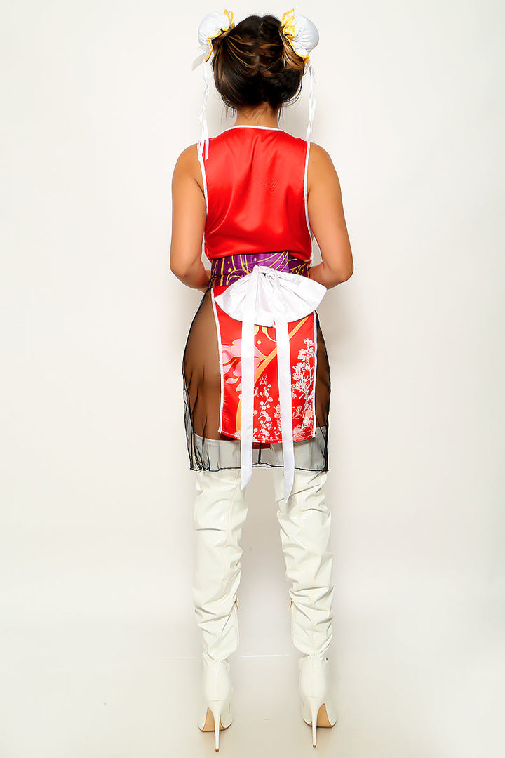 Red Satin Belt High Slit Sexy 3Pc Video Game Chunli Costume